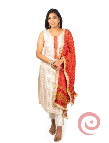 Modern Geometric patterned full suit with a class bandhani dupatta