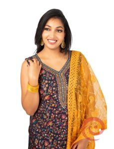 - Dupatta Design – Elegant Bandhani design with golden boarder